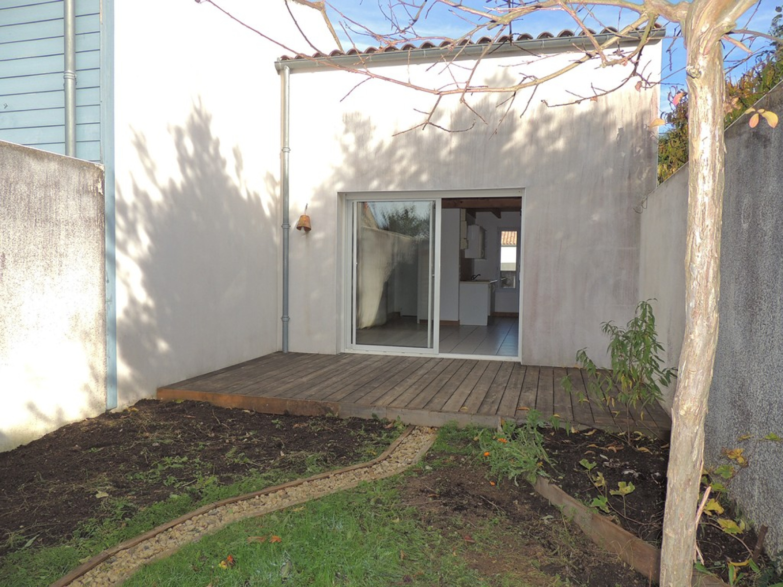 Maison avec jardinet sans vis-à-vis clos de murs, elle comprend : une entrée avec placard, salon-séjour donnant sur terrasse exposée Sud, un espace cuisine américaine aménagée, wc indépendant.