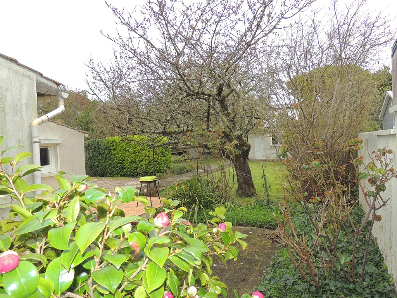 Entre le centre et la plage, proche commodités, écoles, transports et nature, maison de plain pied construite dans les années 60, sur une belle parcelle de terrain de 529 m² clos de mûrs. Elle comprend : salon-séjour avec cheminée, cuisine séparée, deux chambres, bureau, salle de bains (baignoire et douche), wc séparé, cellier, véranda chauffée, garage de 28 m². Dépendance en fonds de jardin.