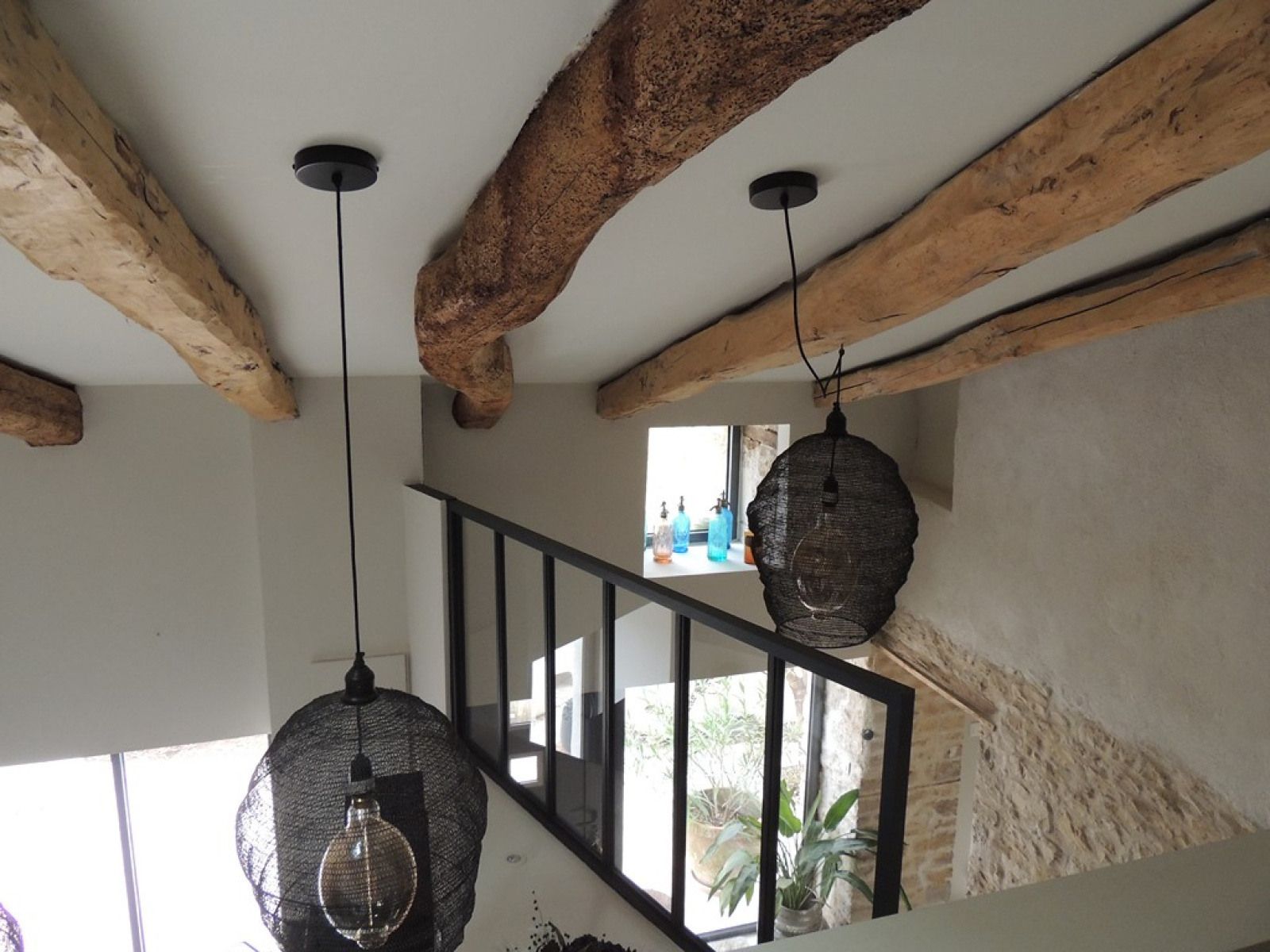 - A l'étage, le palier dessert trois chambres, une mezzanine, un bureau et une salle d'eau avec wc.