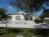 Plain-pied en parfait état, d'une surface habitable confortable, sur une parcelle de 725 m2 entièrement clôturée et sans vis à vis. Maison très bien entretenue avec de belles prestations. Elle comprend : entrée avec placard, cuisine aménagée et équipée ouverte, salon-séjour donnant sur terrasse et piscine, trois chambres avec placard et sa salle d'eau-wc privative, grand bureau (possiblité quatrième chambre), wc, buanderie, garage de 48 m², abri jardin.