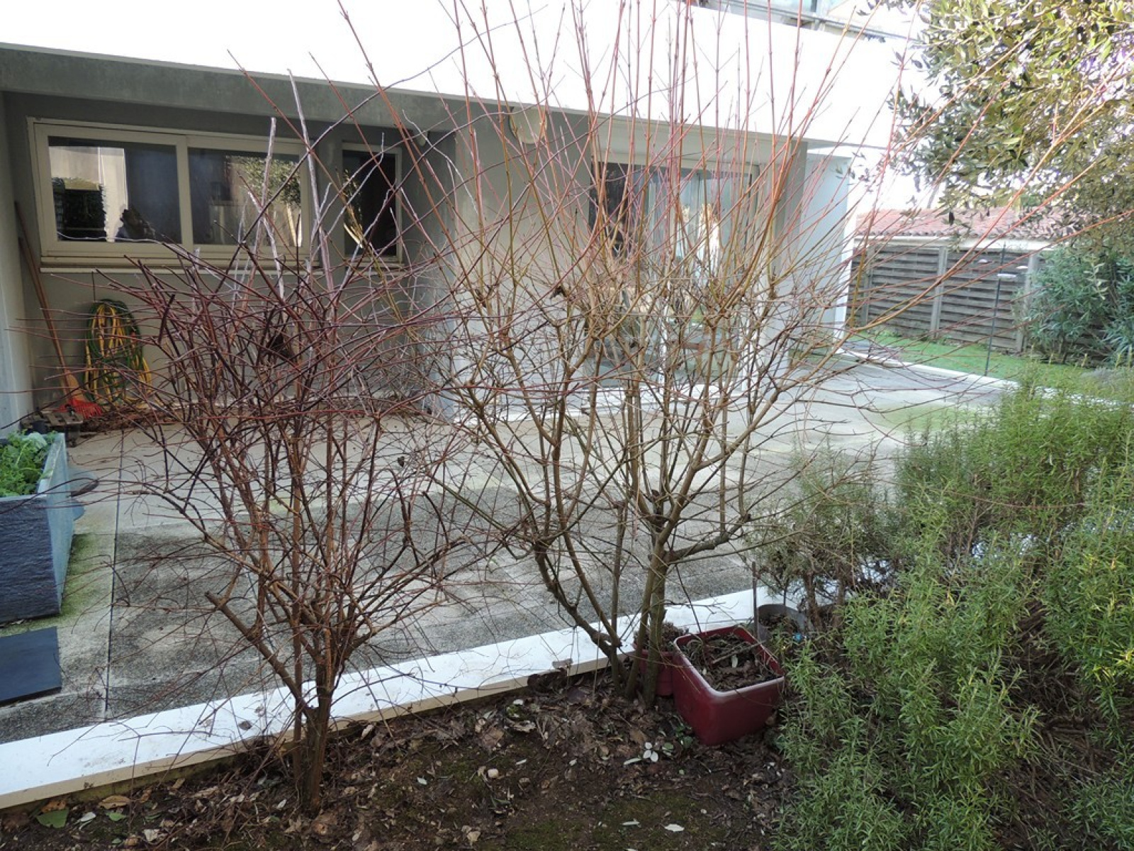 Bel espace extérieur avec terrasse et jardin. Une place de parking en sous sol.