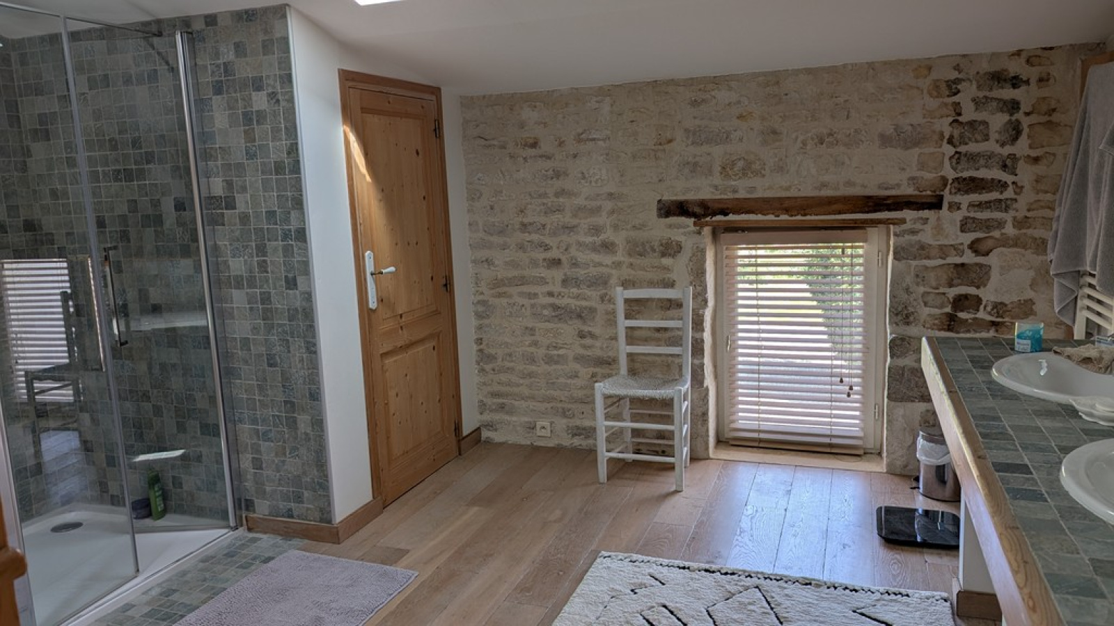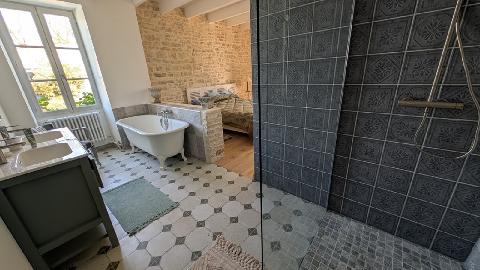 Beaucoup de goût, de charme et de douceur pour cette belle demeure rénovée avec des matériaux de grande qualité.