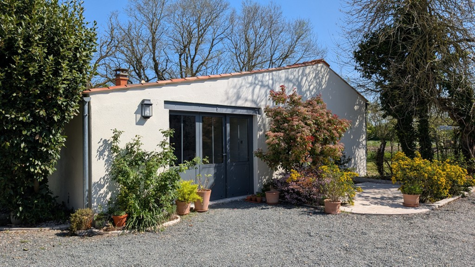 La maison d’invités ou gîte permet d’accueillir famille et amis ou de faire de la location touristique. Il comprend un grand séjour avec cheminée insert, une cuisine équipée, 2 chambres ainsi qu’une salle de bains avec wc. Il bénéficie également d’un jardin privé.