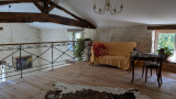 Au niveau supérieur, une mezzanine qui offre une vue plongeante sur le salon permet d’imaginer tout aménagement complémentaire. Suivent trois grandes chambres ainsi qu’une salle de bains (baignoire et douche à l’italienne) et enfin des toilettes séparées.